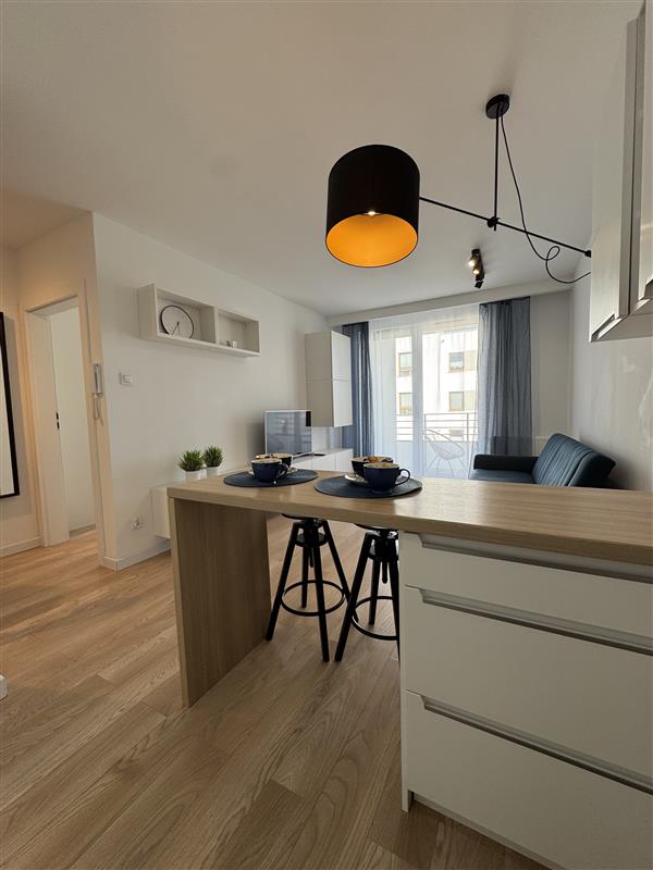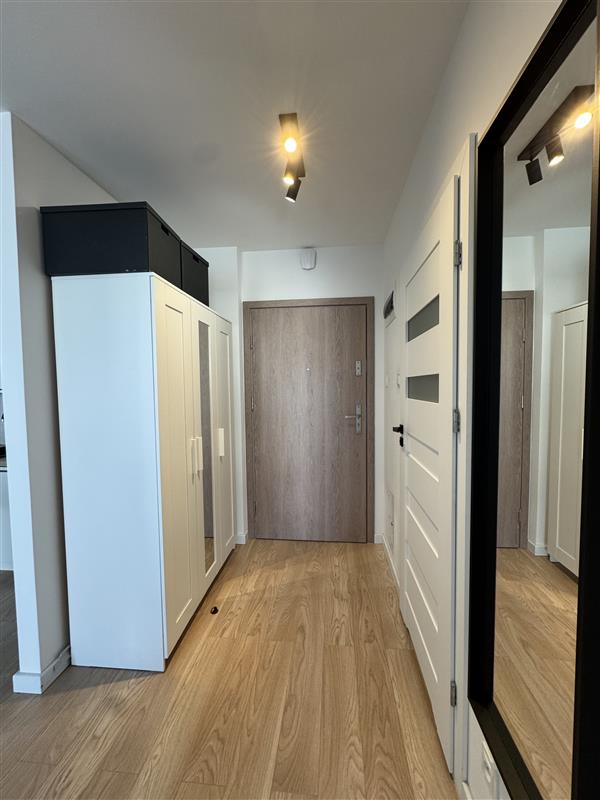Mieszkanie wyposażone jest we wszystkie meble i sprzęty niezbędne do funkcjonowania: zmywarka, pralka, piekarnik, szafy w korytarzu i sypialni, sofa rozkładana w salonie.