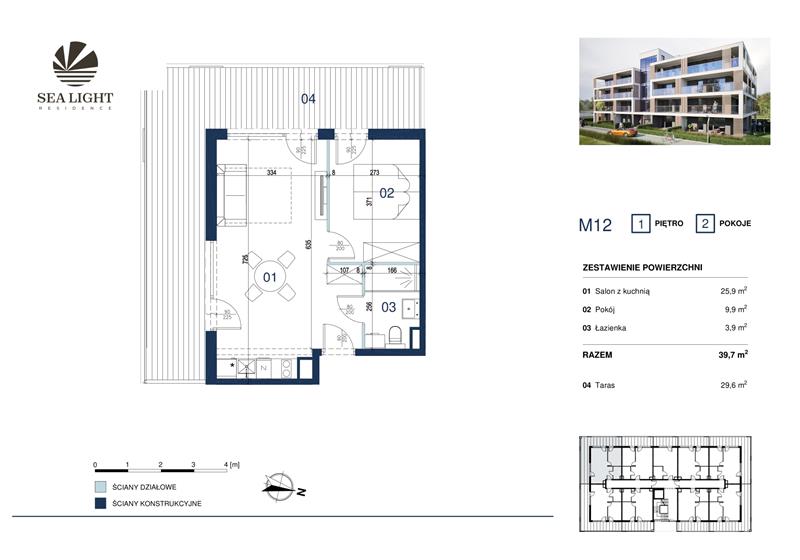 Prezentujemy dwupokojowy apartament o powierzchni 39,70 mkw z tarasem i ogródkiem położony na parterze.