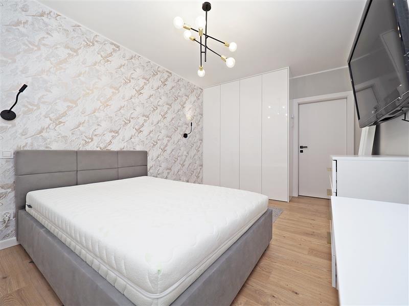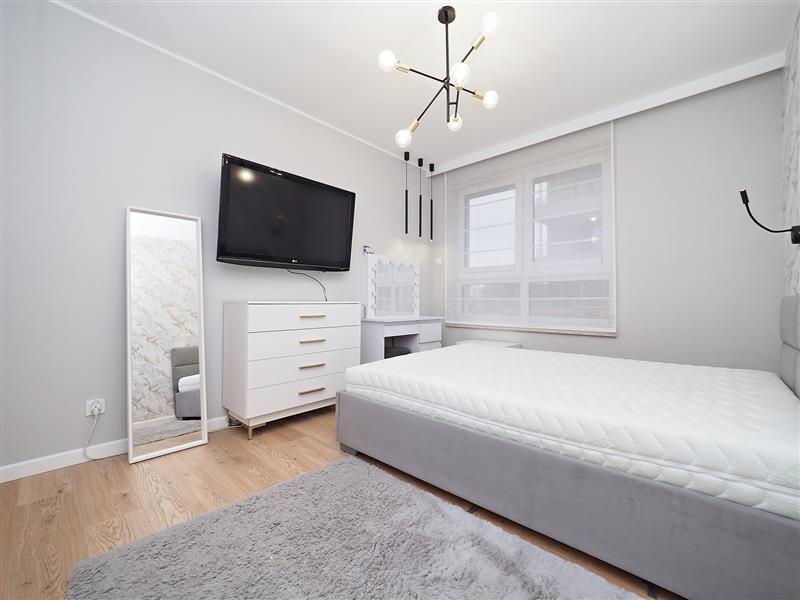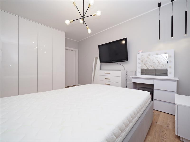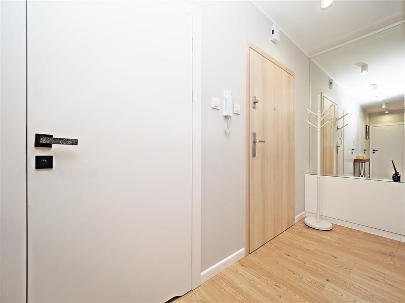 Mieszkanie wyposażone jest w liczne udogodnienia w m.in. w postaci ogrzewania podłogowego ze sterownikami w każdym z pokoi i w łazience, rolet zewnętrznych sterowanych elektrycznie oraz rozprowadzonych instalacji tv w każdym z pokoi. Dodatkowo w oknach znajdują się rolety rzymskie i plisy. Każda z sypialni oraz przedpokój wyposażone w szafę w zabudowie.