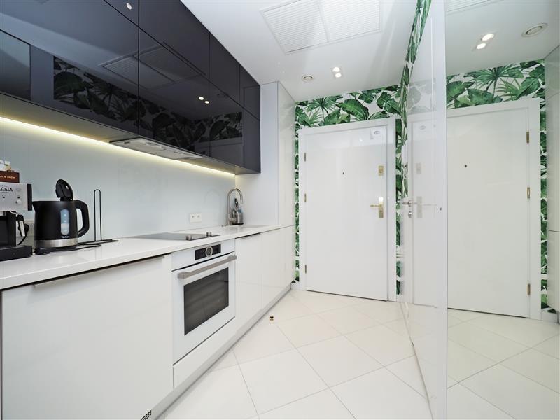 Aneks kuchenny wyposażony w lodówkę w zabudowie, płytę elektryczną, piekarnik, zmywarkę. W łazience pralka w zabudowie.