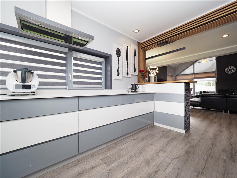 Z udogodnień mamy tu wszystko, czego można zapragnąć. Kilka lat temu właściciele zmienili formę ogrzewania z gazowego na pompę ciepła. Do kompletu mamy tu fotowoltaikę oraz solary na ciepłą wodę. Ogrzewanie w formie podłogówki. Dodatkowo w salonie kominek tradycyjny. Wokół jacuzzi rolety zewnętrzne.